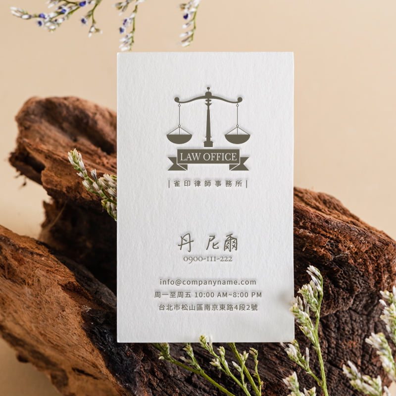 以凸板印刷印製的名片,採用300gsm 凸版專用棉紙,質地厚實觸感柔軟,多種墨色可選。印刷處因壓力可能產生些許凹陷。