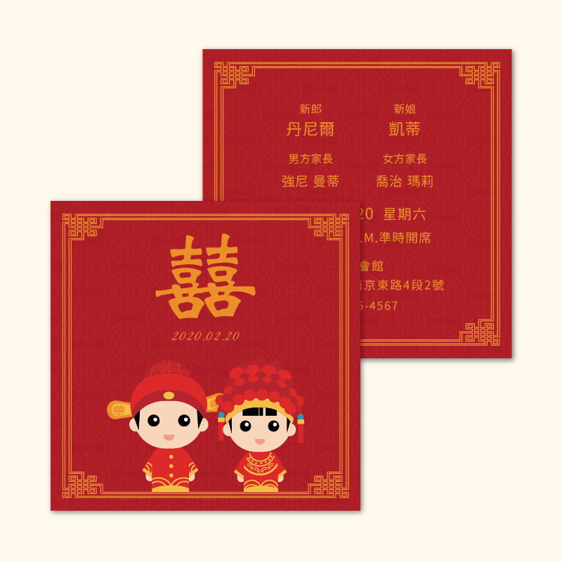彩色雙面喜帖,精選多樣設計,自由編輯內容,線上製作所見即所得,多種優質紙材選擇,精湛台灣在地印刷,無可比擬的絕佳性價比