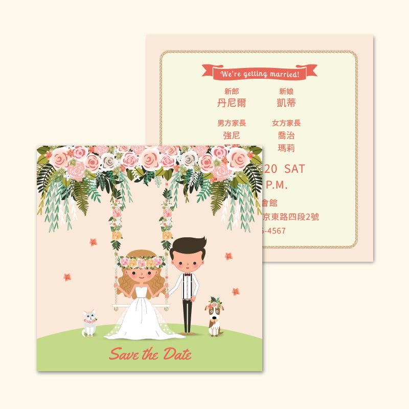 彩色雙面喜帖,精選多樣設計,自由編輯內容,線上製作所見即所得,多種優質紙材選擇,精湛台灣在地印刷,無可比擬的絕佳性價比