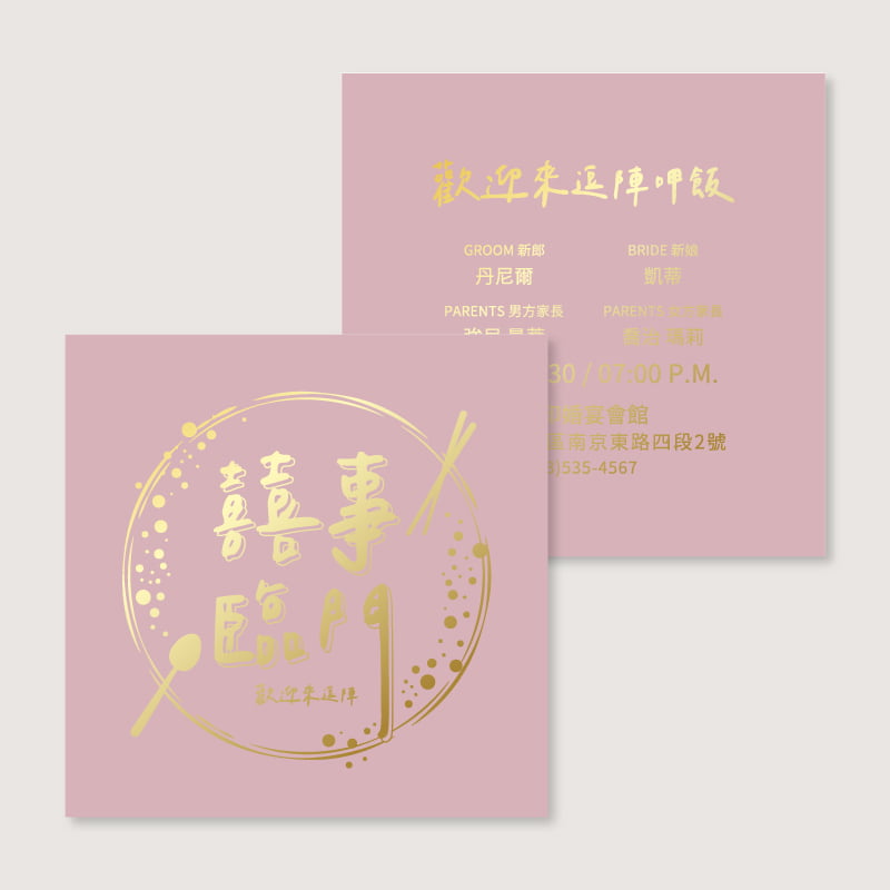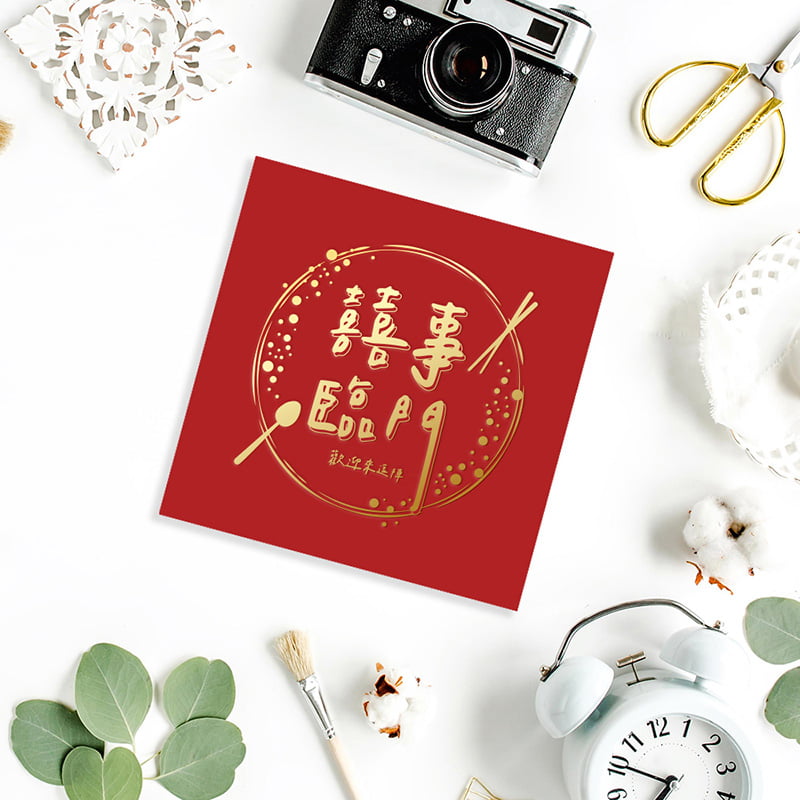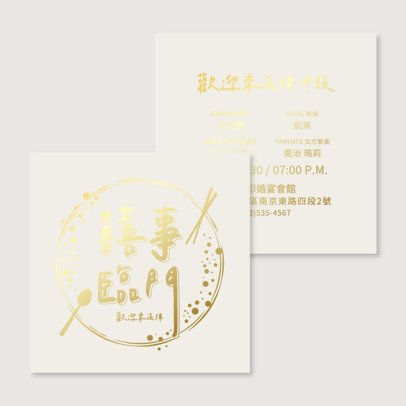 • 商品尺寸:  卡片 153x153mm 雙面燙金, 單面可編輯