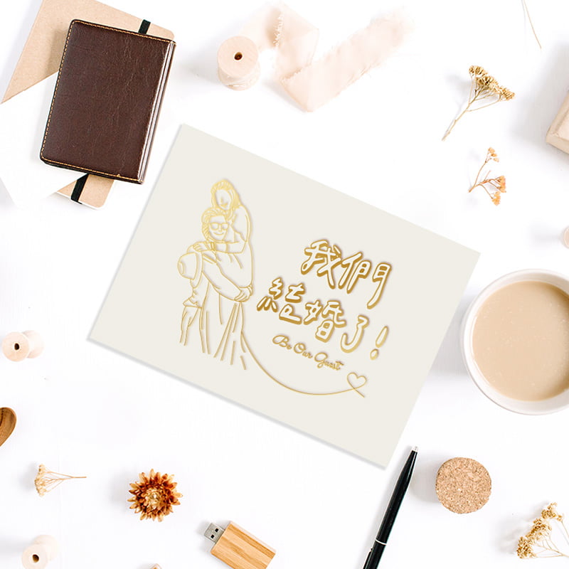 採用厚卡燙金印製的,卡片紙張多色可選,可以自由調整內容,傳統、現代都行