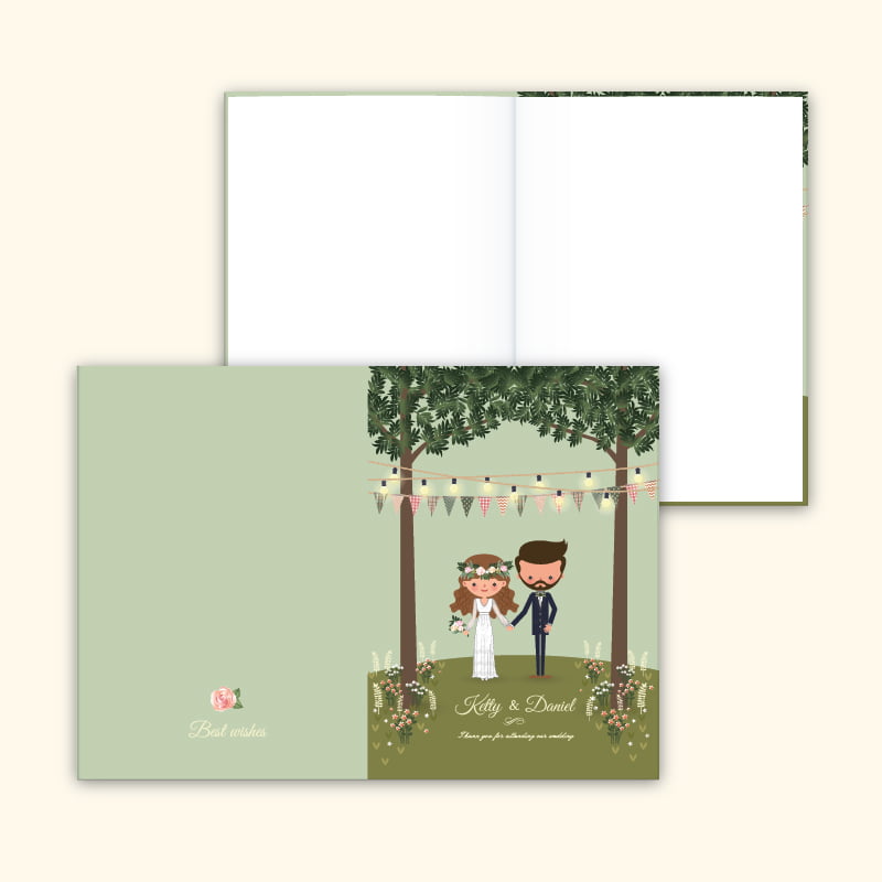 封面、封底精緻設計,打開左右兩面空白讓您的賓客簽名留念(此簽名本無額外簿冊內頁)。