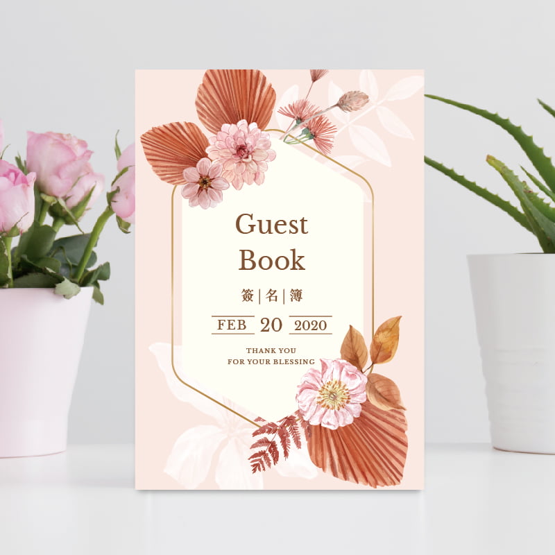 封面、封底精緻設計,打開左右兩面空白讓您的賓客簽名留念(此簽名本無額外簿冊內頁)。