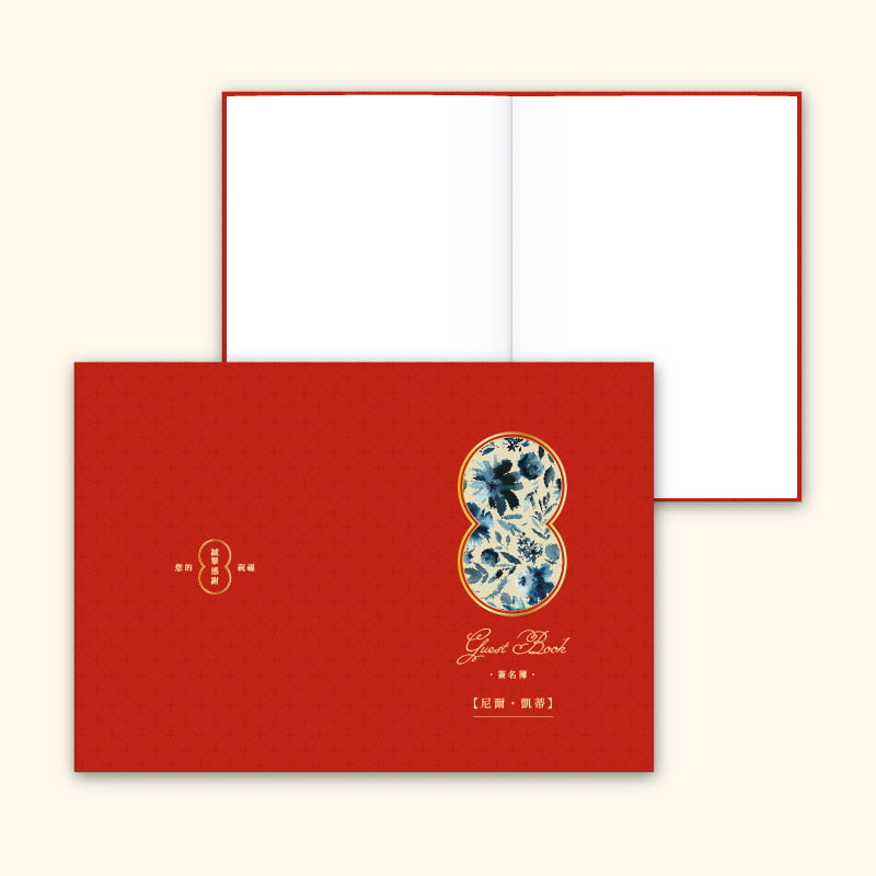 封面、封底精緻設計,打開左右兩面空白讓您的賓客簽名留念(此簽名本無額外簿冊內頁)。
