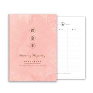 婚禮收禮處使用的禮金簿,可客製調整封面與封底,表面霧膜滑順觸感,24 頁畫刊紙內頁共240欄,每頁可書寫 10 位賓客