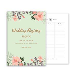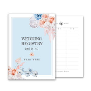 婚禮收禮處使用的禮金簿,可客製調整封面與封底,表面霧膜滑順觸感,24 頁畫刊紙內頁共240欄,每頁可書寫 10 位賓客