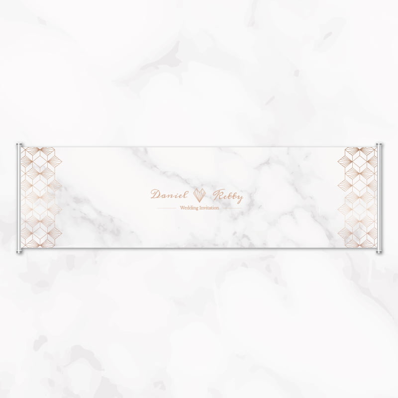 使用珍珠緞面布料印製,尺寸145x40cm,含鋁桿軸心,使用既有設計即可印製