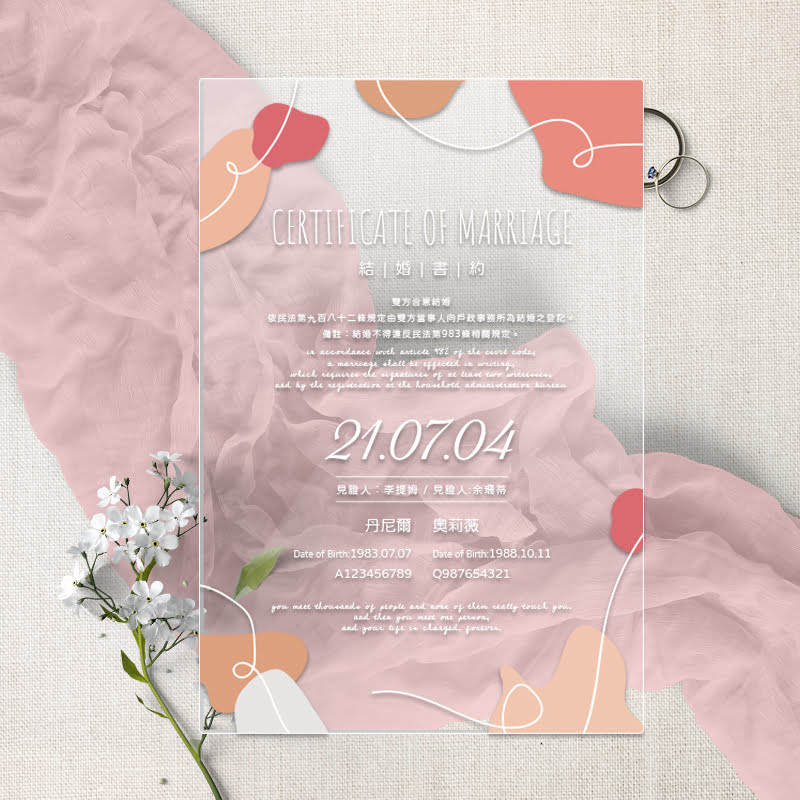 台灣設計製作的精美設計的透明壓克力書約,適合用來紀念最重要的這一天。